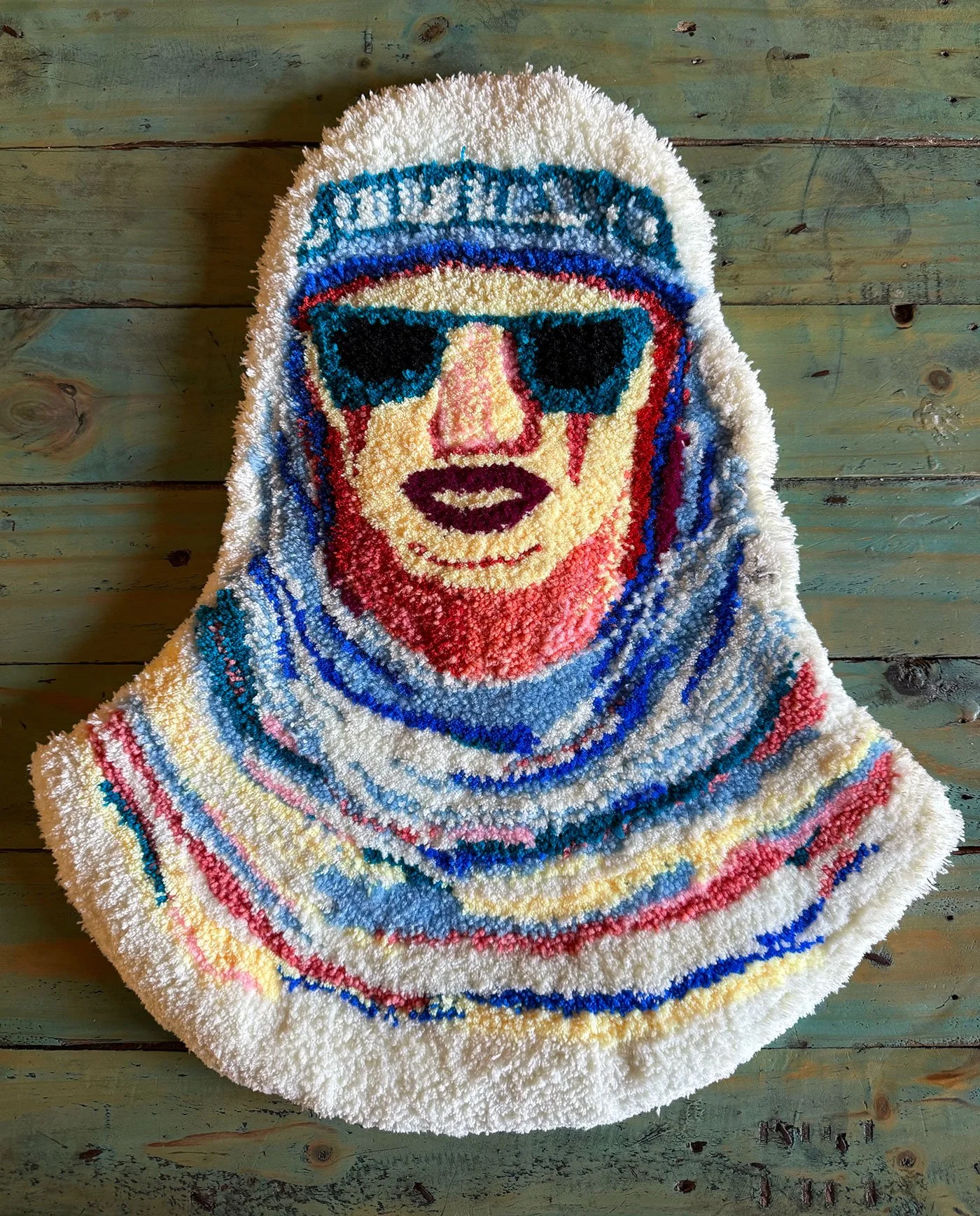 A portrait of Marina. Veiled in swirling color and quiet devotion, she is still the coolest person in the room. An Italian woman draped in a Lebanese soul. Where two Mediterranean worlds meet, tufted together in color and attitude.